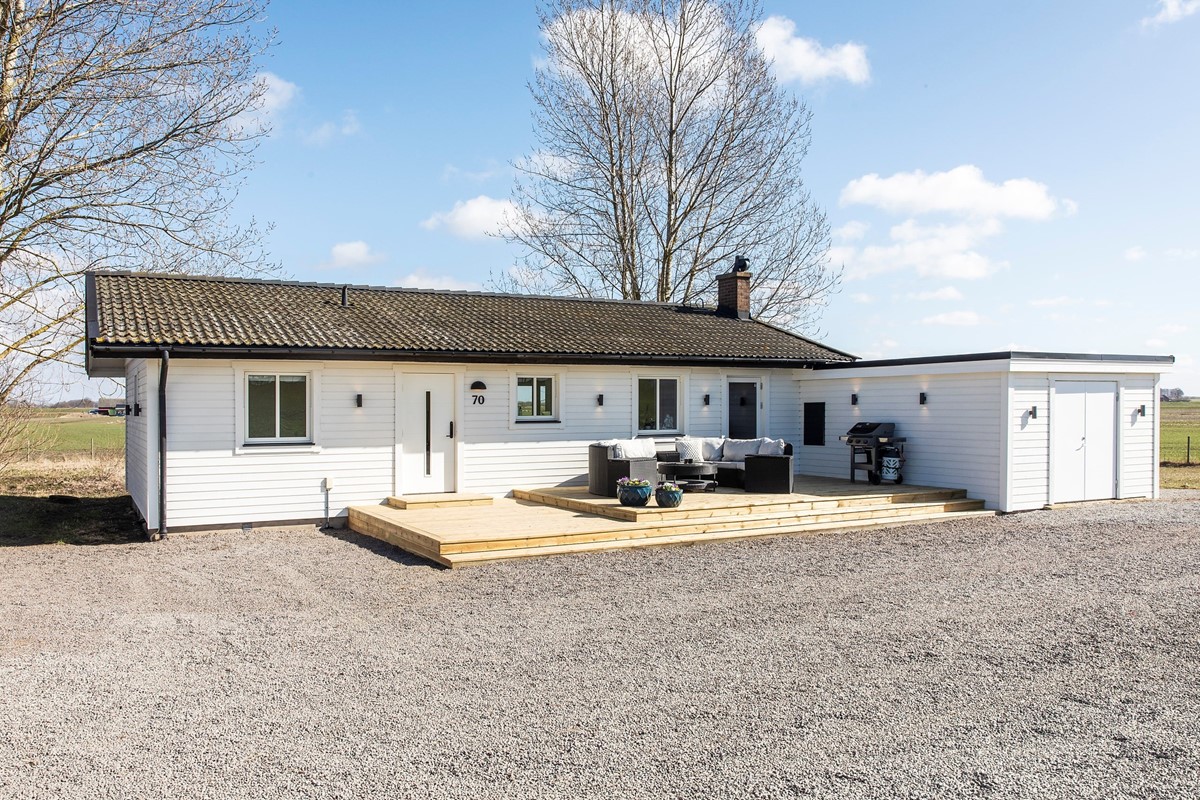 Välkommen till landet, mellan Kvisttofta och Vallåkra med fria vidder och vacker natur. Här finns möjligheten att bli ägare till denna fina och välplanerade villa med allt bekvämt på ett plan. Huset har under de senaste åren genomgått en rad renoveringar med bl a ny fasad med fin ljussättning, delvis nya fönster/dörrar, nyrenoverat garage samt nytt kök och merparten av alla ytskikt. Bostaden är ljus och trevlig med tre möjliga sovrum, ett fint kök från 2020 med generös matplats och utgång till det stora trädäcket i sydväst samt ett charmigt vardagsrum med kamin. Härtill ett äldre med fräscht badrum med uppdaterad inredning och nyare tvättstapel.
