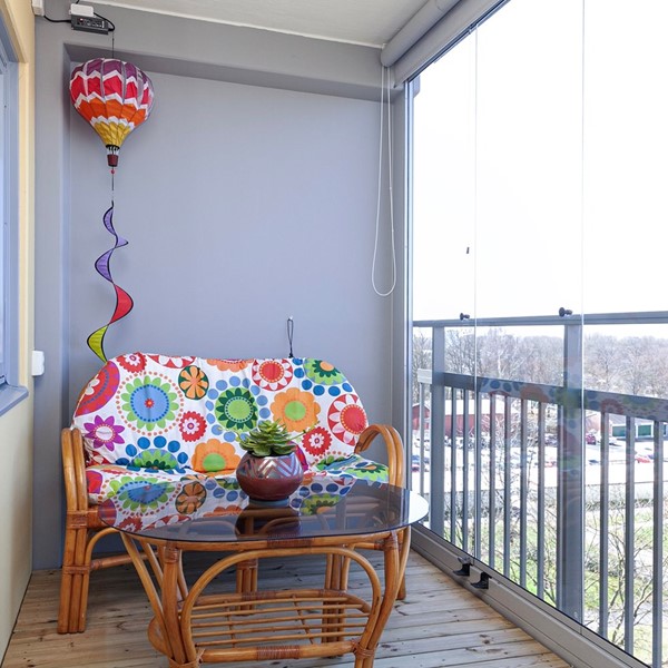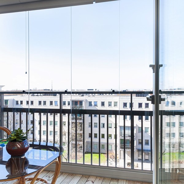 Det praktiska köket erbjuder bra arbetsytor och plats för förvaring. En trivsam matplats kompletterar köket väl. Från köket når du bekvämt den stora inglasade balkongen. Här kan du möblera med en loungegrupp och njuta av eftermiddags- och kvällsolen och den finfina utsikten i ostört västerläge.