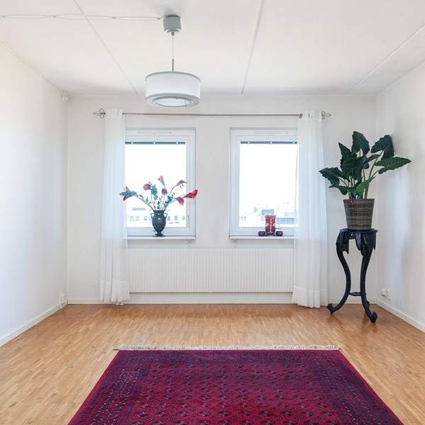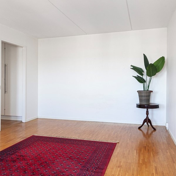 I det luftiga vardagsrummet möblerar du enkelt med en soffgrupp och tv-möblemang. Även här njuter du av det fridfulla gårdsläget.