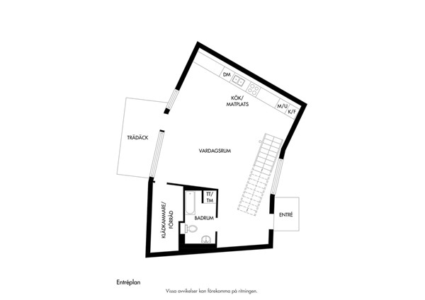 På entréplanet finns även fräscht, helkaklat badrum (renoverades 2019) med vita väggar och grått golv. Badrummet har en vägghängd wc, handfat med underskåp och spegel, badkar, handdukstork, tvättpelare, spotlights i tak och lyxig golvvärme.