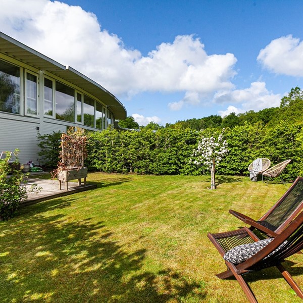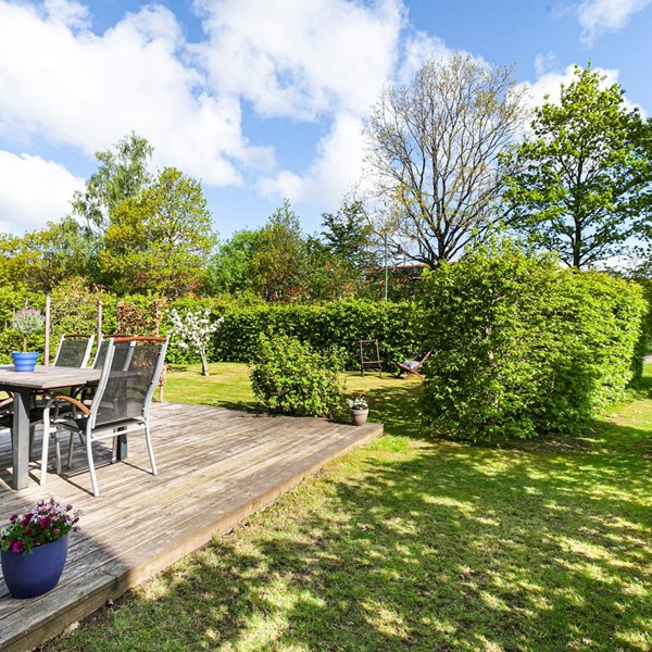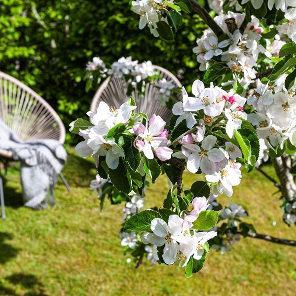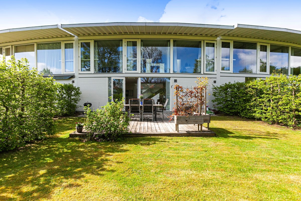 Vardagsrummet med den öppna planlösningen mot köket och matplatsen erbjuder en härlig social sällskapsyta. I denna del finns det gott om plats för både soffgrupp och fåtölj samt tv-möblemang. Rummet har vitmålade väggar och stora fönster ut mot bostadens mysiga trädgård i fint läge. I den rofyllda och privata trädgården ges utrymme för både familj och vänner att umgås runt grillen och samtidigt njuta av solen.